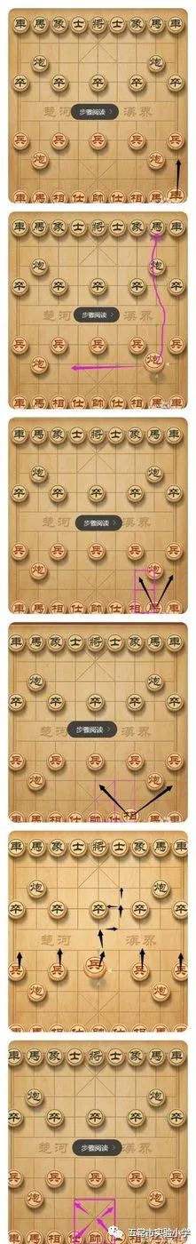 4 棋子的走法 帅(将)帅(将)是棋中的首脑,是双方竭力争夺的目标。它只能在九宫之内活动,可上可下,可左可右,每次走动只能按竖线或横线走动一格。帅与将不能在同一直线上直接对面,否则走方判负。仕(士)仕(士)是将(帅)的贴身保镖,它也只能在九宫内走动。它的行棋路径只有九宫内的斜线。相(象)相(象)的主要作用是防守,保护自己的帅(将)。它的走法是每次循对角线走两格,俗称“象飞田”。相(象)的活动范围限于河界以内的本方阵地,不能过河,且如果它走的田字中央有一个棋子,就不能走,俗称“塞象眼”。车 车在象棋中威力最大,无论横线、竖线均可行走,只要无子阻拦,步数不受限制。因此,一车可以控制十七个点,故有“一车十子寒”之称。炮 炮(炮)在不吃子的时候,移动与车完全相同。当吃子时,己方和对方的棋子中间必须间隔1个棋子(无论对方或己方棋子),炮是象棋中唯一可以越子的棋种。