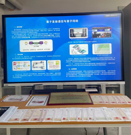 清华大学教授龙桂鲁团队展示量子直接通信技术信息及论文、专利、实际应用获奖。新华网 林雨南 摄