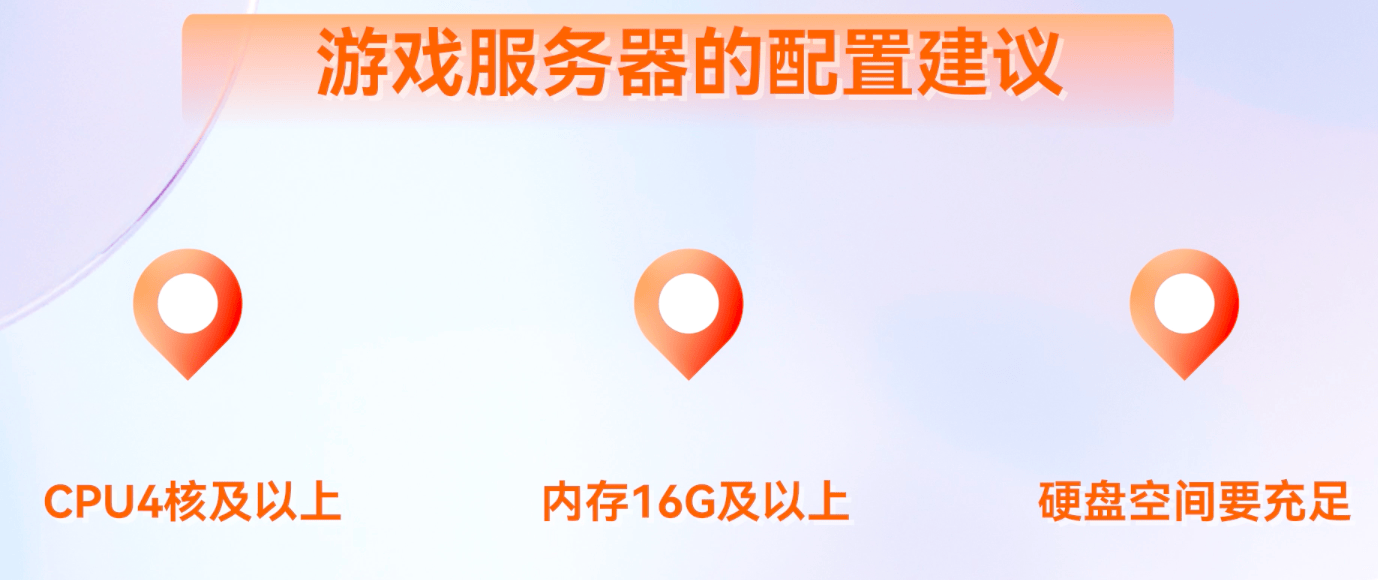 由于游戏消耗的服务器CPU、内存、硬盘、显卡比较大,所以我们建议服务器硬件性能配置要高一些