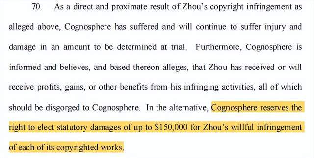 这次可不是普通和解那么简单了,原告要求被告Zhou赔15万美金,换算成人民币就是¥1036005