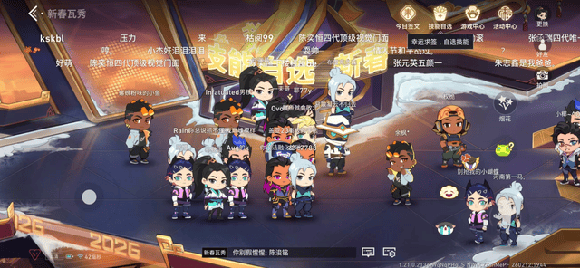 传统FPS游戏的大厅只是个功能性的等待界面,瓦手却把它改造成了赛博庙会。在这里,你可以赛博求签测今日运势,可以技能自选尝试英雄组合,可以在新春玩法里实战演练……这些设计填补了对局之外的社交空白,让等待匹配的时间不再无聊。